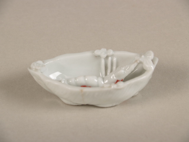 Waterbak met decor van garnaal in reliëf, blanc de chine (Nederlands)