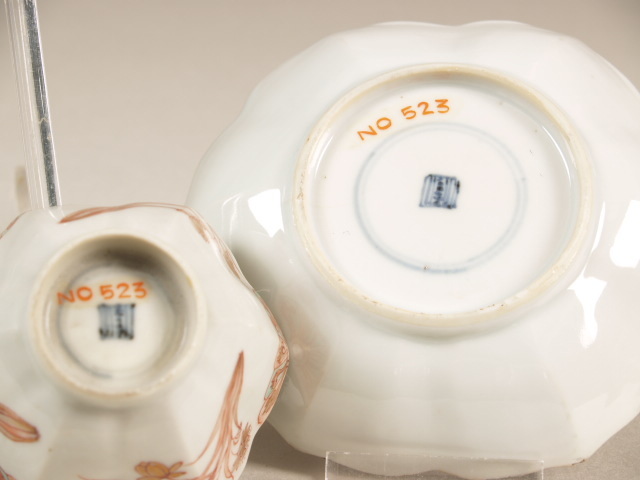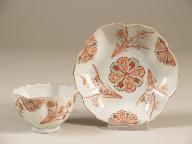 Kop en schotel met golvende wand en decor van rozetten en bloeiende waterplanten (Nederlands)