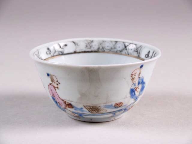 | Nederlands | Kopje met decor van figuren aan een tafel, famille rose, encre de chine |