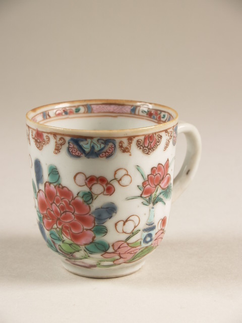 | Nederlands | Kop met oor en decor van bloemen op een wit fond, famille rose |