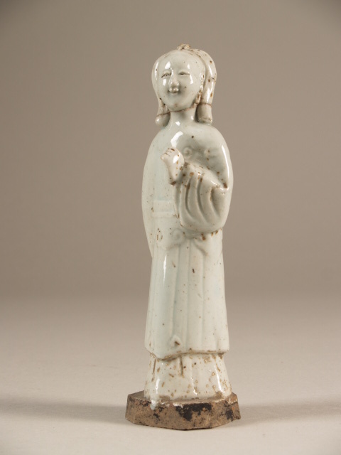 Beeld in de vorm van een vrouw, staand, wit geglazuurd (Q23959)