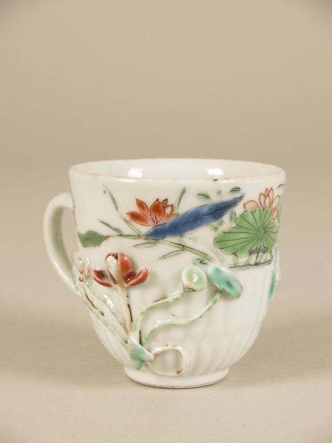 Kop met oor en met decor van eenden en lotusplanten, famille rose (Nederlands)