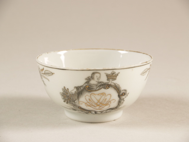 Kopje met decor van bloemen en dubbel monogram in encre de chine (Q23969)