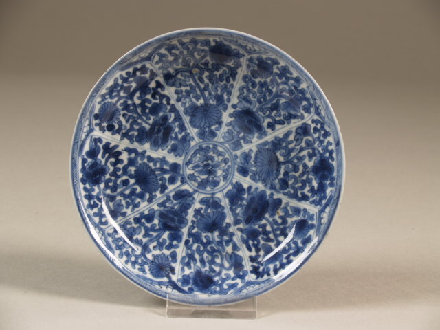Op de bodem in kobaltblauw een insekt in dubbele cirkel. (Nederlands)