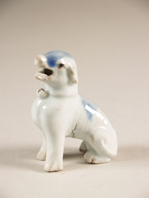 Beeld in de vorm van een zittende hond met halsband waaraan bel.||China||Keramiekmuseum Princessehof NO 00075