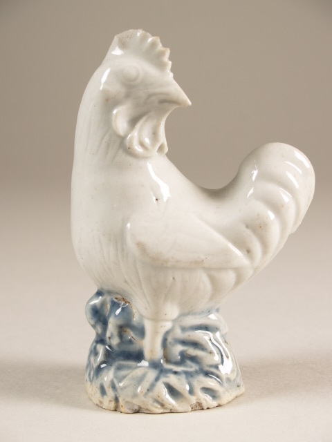 Waterdruppelaar in de vorm van een haan met luchtgaten in vleugel en staart (Nederlands)