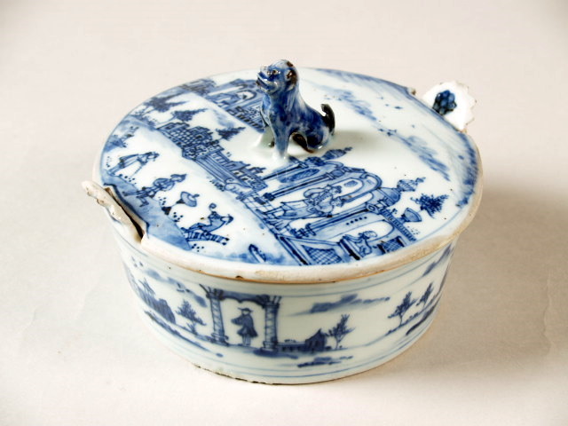 Boterpot met deksel, rond, met decor van Europese voorstelling (Q24037)