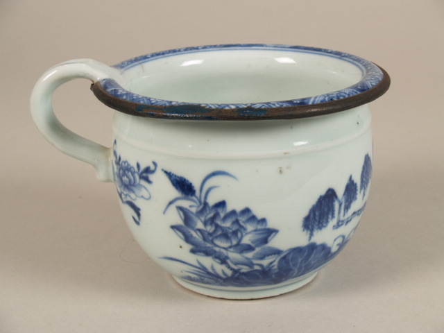 Po met decor van landschap, planten en bloeiende lotussen (Nederlands)