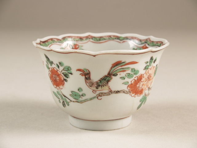 Kop met geschulpte liprand met decor van bloemtakken en vogels (Nederlands)