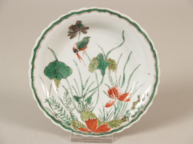 Schoteltje met decor van lotusplanten en vogel, famille verte (Q24072)