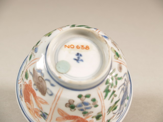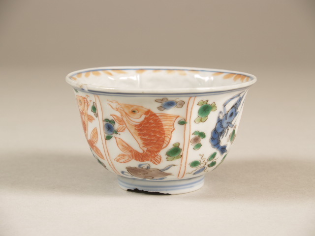 Kop zonder schotel met decor van goudvis, krab en garnaal, famille verte (Nederlands)