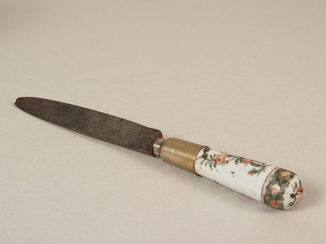 | Nederlands | Mes met decor van rozet en bloeiende plant, famille verte |
