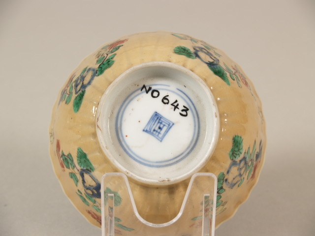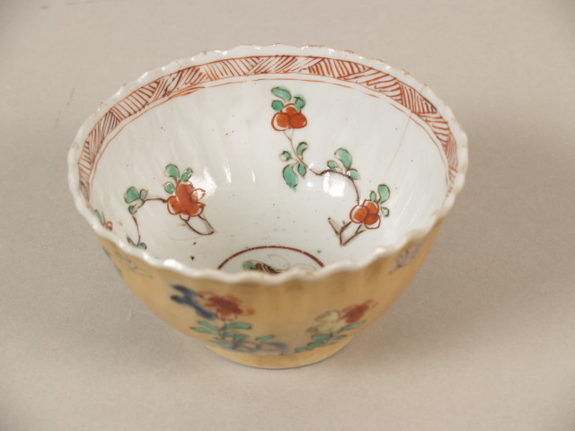 Kop met decor van bloemtakjes, rotspartij en vogels, famille verte (Nederlands)