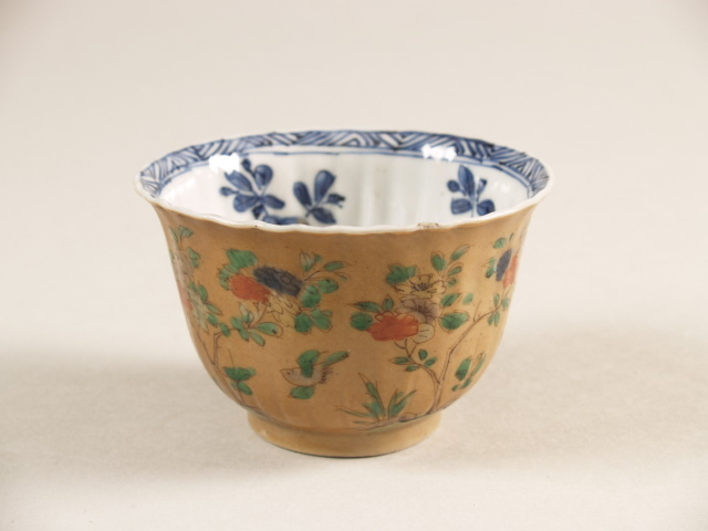 Kop met polychroom decor van bloemtakken, famille verte op zeemleer (Q24087)