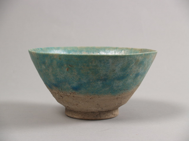 De kom is bedekt met een turkoois-kleurig glazuur en verder versierd met vage sgrafitto versieringen aan de binnenzijde. De binnenzijde is sterk geïriseerd.||Iran||Keramiekmuseum Princessehof GMP 1996-066 |