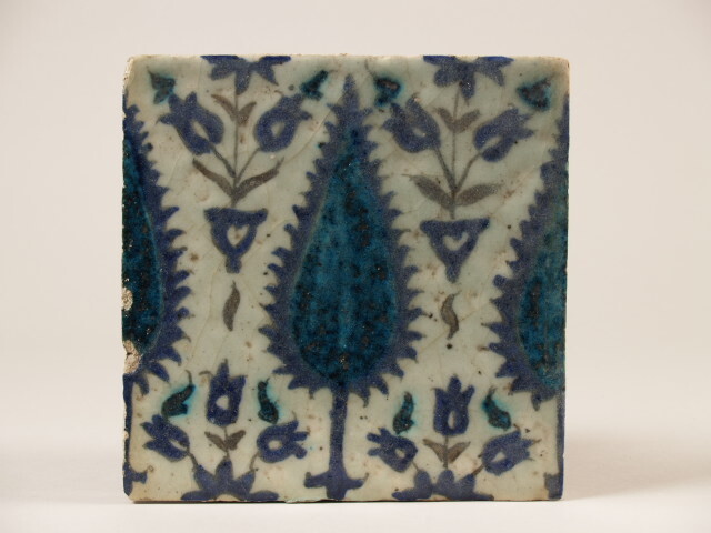 Tegel met decor van cypres en florale motieven (Nederlands)
