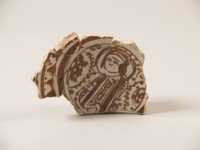 Scherf met decor van menselijk figuur in luster (Q24136)