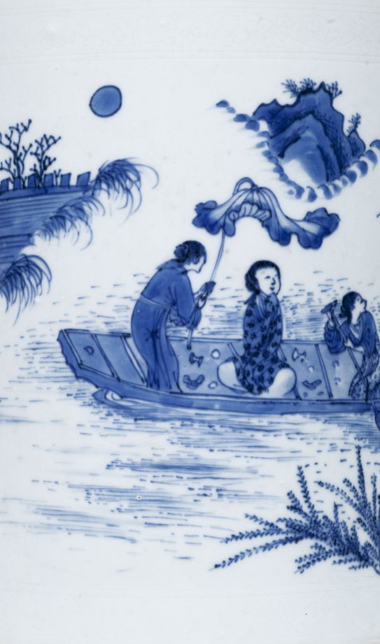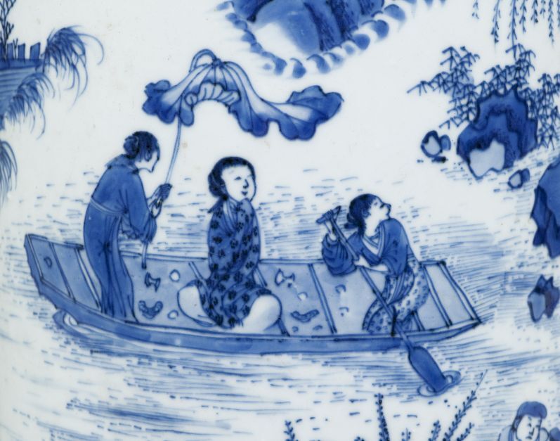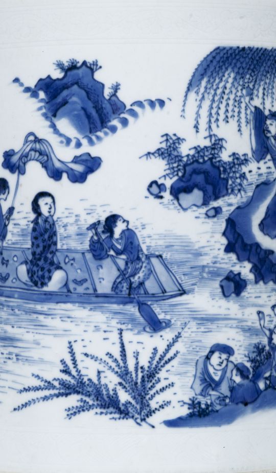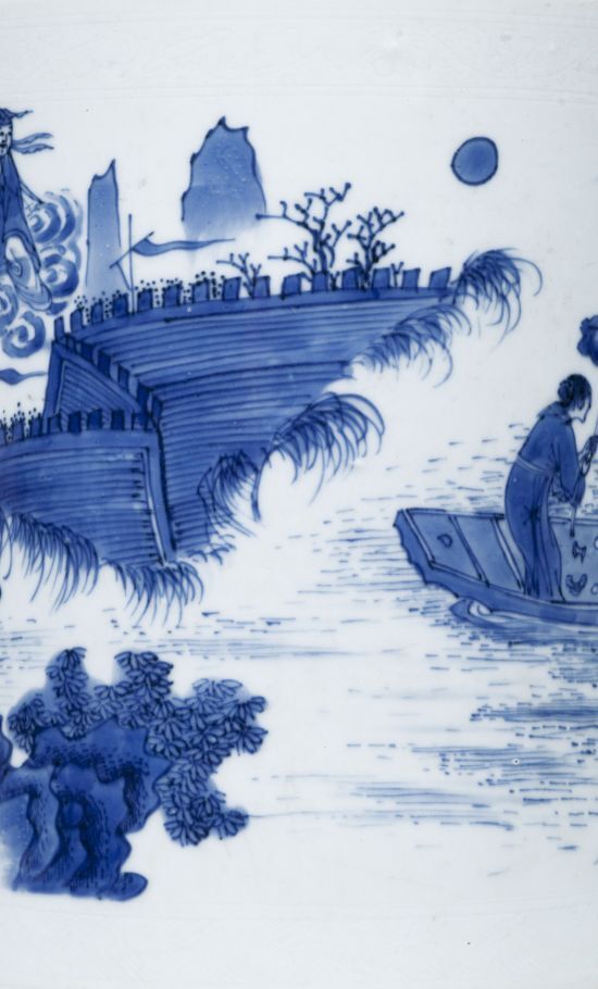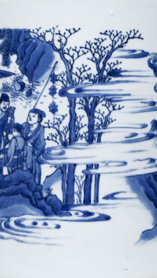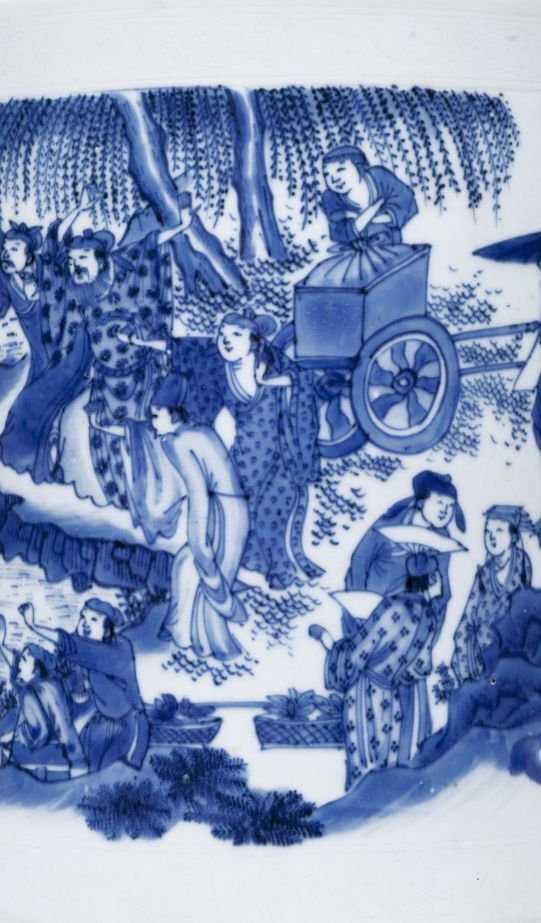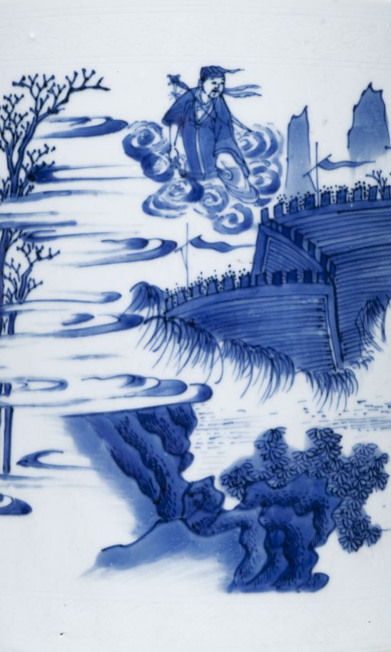 Volgens Wu Chin Shu die deze pot in 1979 bekeek gaat het hier om een scene uit het Daoïtische Yuan drama Lü Tung-Pin (Lü Dongbin). (Nederlands)