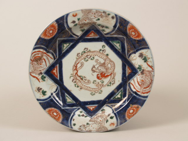 | Nederlands | Schotel met decor van mythologische dieren in imaripallet |