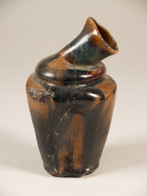 Sojafles, opzettelijk vervormd met ingezakte hals en ingedeukt (Nederlands)