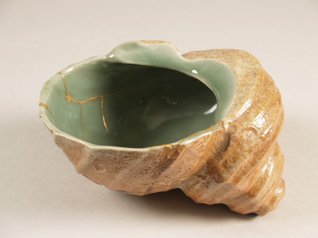 Beeld in de vorm van een schelp, aan de binnenzijde celadonkleurig (Nederlands)