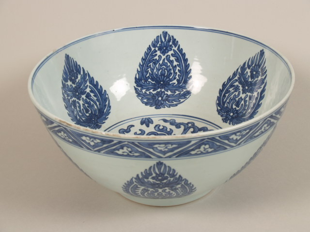 Kom met een beschildering in de vorm van rozetten en pijnappels (Q24244)