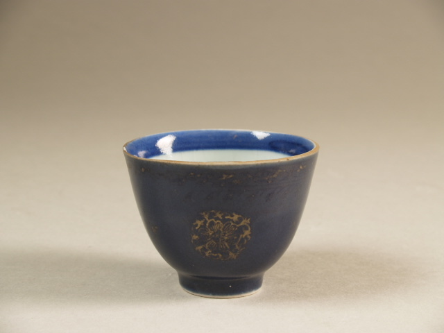Kop, donkerblauw, met verguld floraal decor (Nederlands)