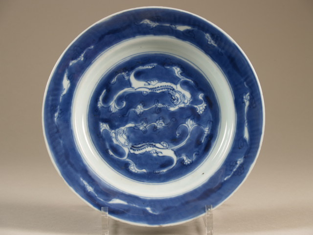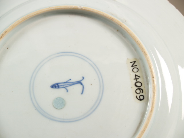 op de bodem in kobaltblauw een vis in dubbele ring (Nederlands)