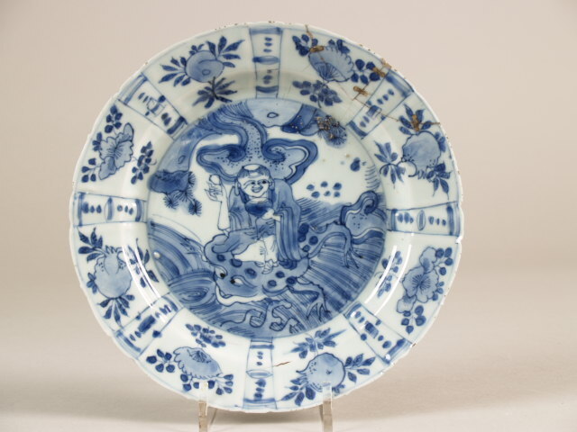 Bord met decor van man, Liu Hai, zittend op driepotige pad (Nederlands)