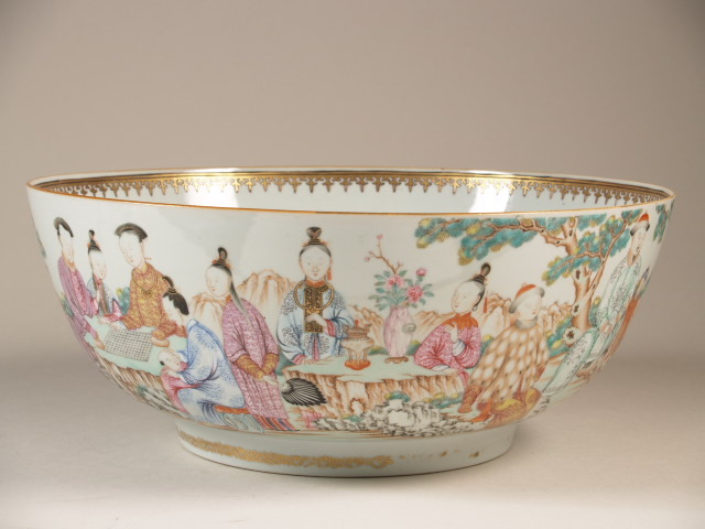 Kom met decor van gezelschap in tuinlandschap (Nederlands)