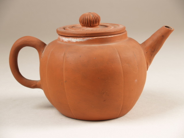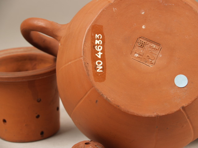 Theepot met binnnenpot en gedecoreerd met inkepingen (Nederlands)