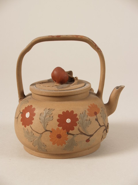 Theepot met hoog hengsel en decor van bloemranken en een knop in de vorm van een vrucht (Q24343)
