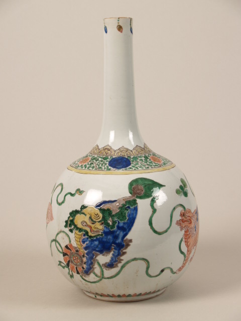 Vaas met decor van boeddhistische leeuwen, famille verte (Nederlands)