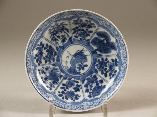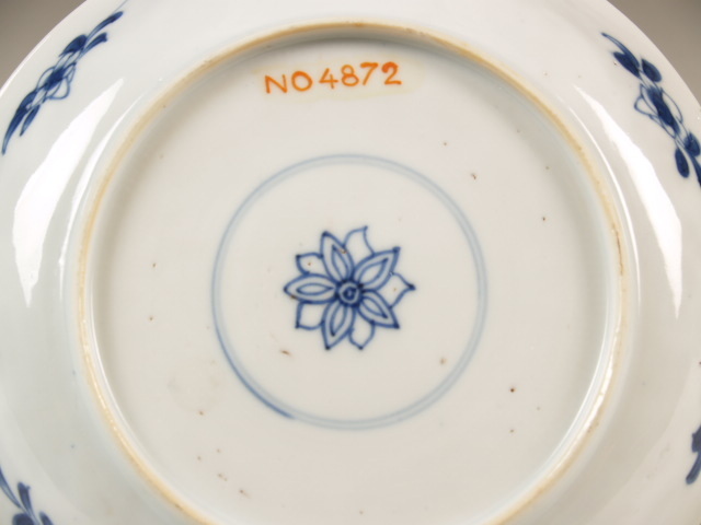 op de bodem in kobaltblauw een tienbladige rozet in dubbele ring. (Nederlands)