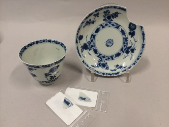 Kop en schotel met decor van bloemtakken, 1 van 5 (Q24396)