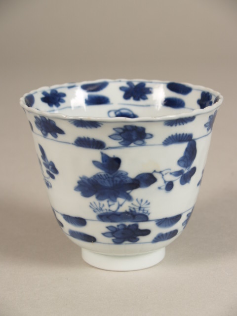 Kop en schotel met gegolfde rand en decor van bloem- en bladmotieven, 1 van 12 (Nederlands)