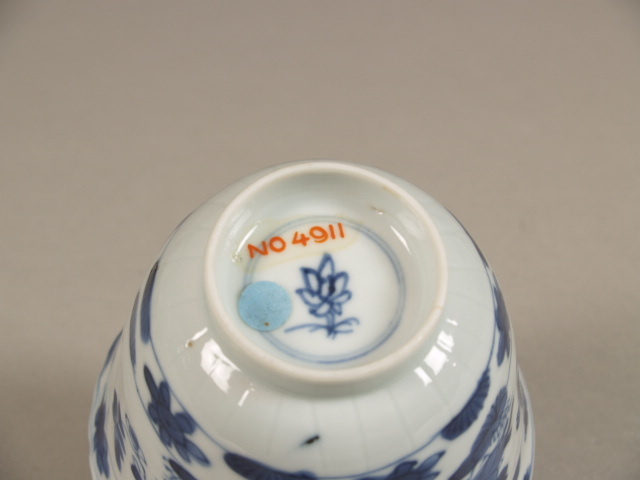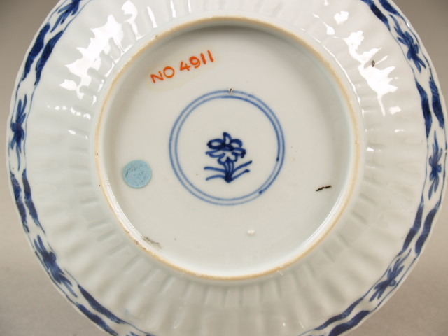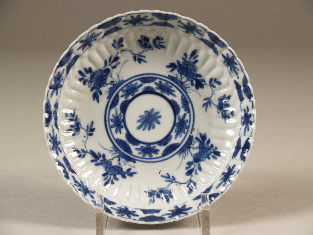 op de bodem een bloeiend plantje in dubbele ring, in kobaltblauw (Nederlands)