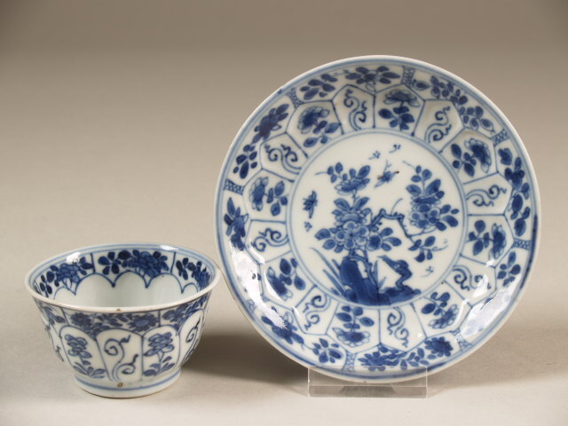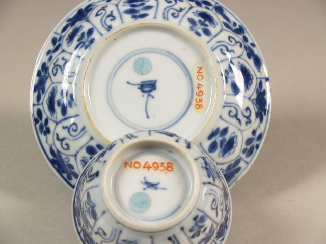 | Nederlands | Kop en schotel met decor van vakken waarin krullen of bloemtakken, 1 van 2 |