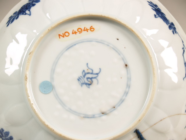 op de bodem in kobaltblauw een conch-shell (oorschelp) in dubbele ring (Nederlands)