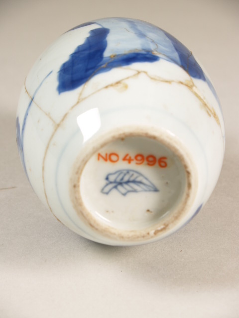Pot beschilderd in onderglazuur blauw met een decoratie van een tuinlandschap met een vrouw zittend tegen een rots, verderop loopt een bediende die een schaal in haar handen draagt. De oorspronkelijke porseleinen deksel ontbreekt. Op de bodem bevindt zich een artemisiablad. Het vaasje heeft een zilveren montuur met in het randwerk een standaard merk van een leeuw/2, te dateren tussen 1814-1953. In het deksel een VK 74 merk en minervahelm in een cirkel (merk van het keurkantoor) . VK werd gebruikt door Kempen & Zn. tussen 1858-1924. In de 19de (m.n. in de jaren '50) tot begin 20ste eeuw is er in Nederland een opleving in het aanbrengen van zilveren monturen op Chinees porselein. Blauw-wit (Nederlands)