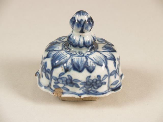 Deksel met decor bloemen en bladeren in onderglazuur blauw (Q24450)