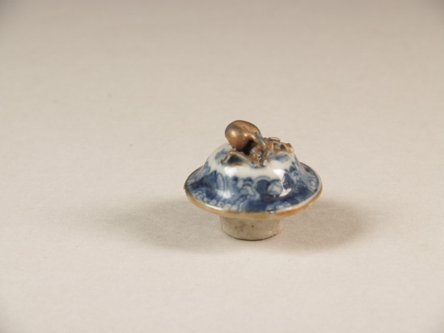 Deksel met knop in de vorm van een perzik en vegetaal decor (Nederlands)