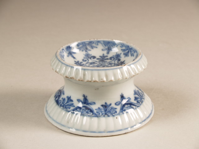 Zoutvat met geribde randen en decor van bloemen, chine de commande (Nederlands)