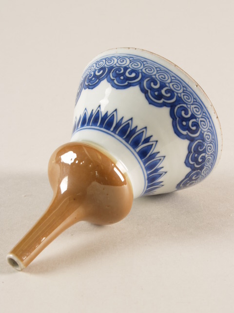 Trechter met capucijnerbruine tuit en decor van ruyikoppen, spiralen en petalen, chine de commande (Nederlands)