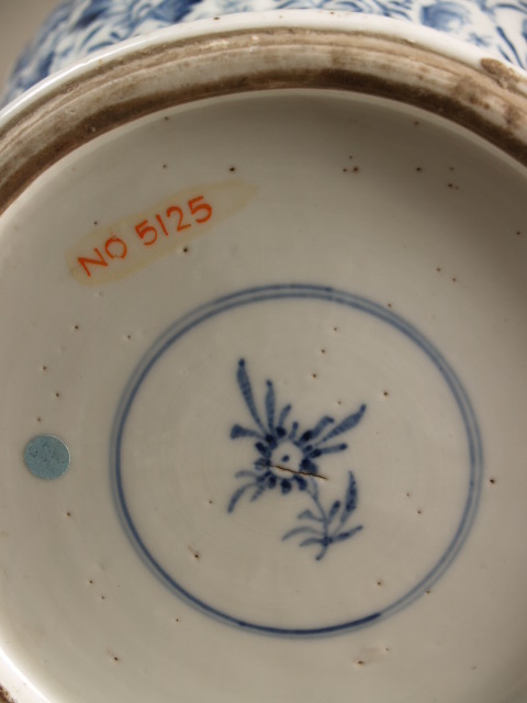 op de bodem in kobaltblauw een bloeiende plant in dubbele ring (Nederlands)