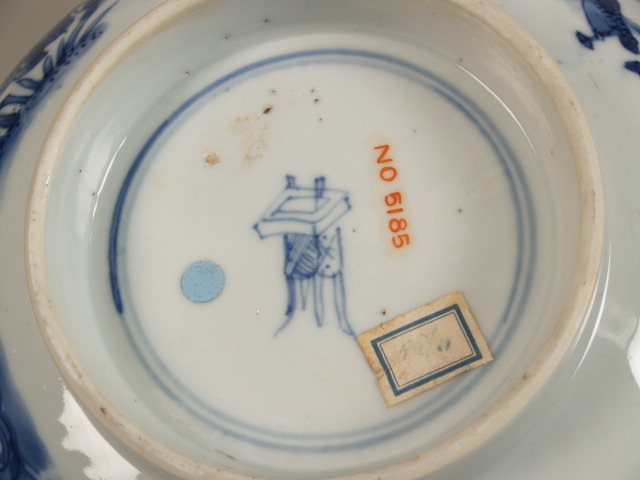 in kobaltblauw op de bodem een hoge, vierpotige wierookbrander in dubbele ring (Nederlands)