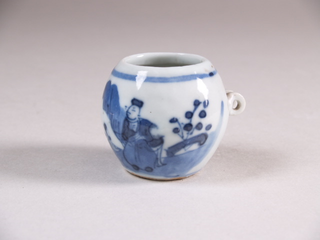 Bak, vogelvoerbak met decor van 2 figuren in landschap (Q24547)