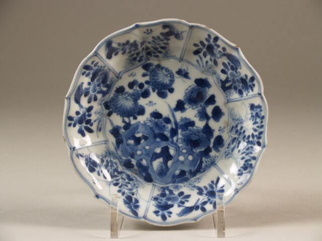 | Nederlands | Schotel met opstaande geribbelde rand en decor van rotspartij met bloemen |