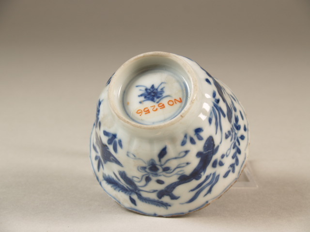 op de bodem in kobaltblauw een bloem in dubbele ring; zie NO 109 (Nederlands)