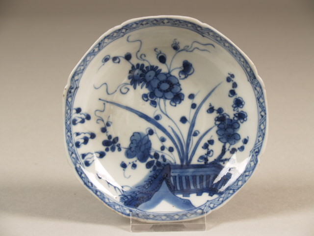 Schoteltje met geschulpte rand en decor van tuinlandschap met bloemen (Q24573)